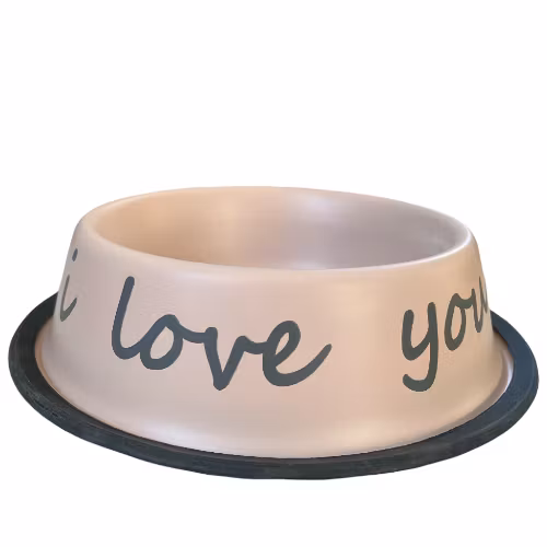 Matskål med ett sött budskap, silikonring som förhindrar glid. Tillverkad i rostfritt stål.