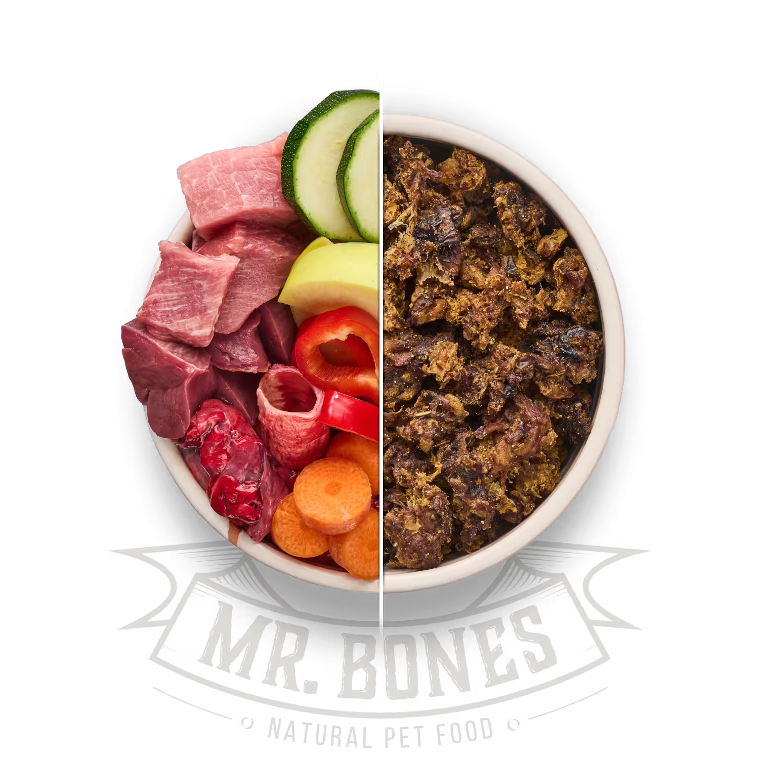 Här möts saftigt fläskkött, näringsrika inälvor och äkta frukt & grönsaker i en balanserad måltid där varje ingrediens fyller en funktion.
